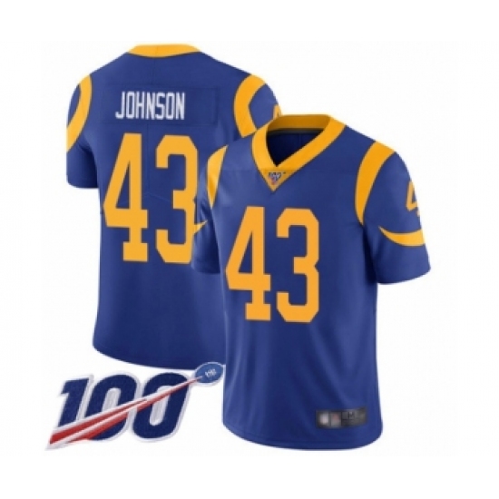 Men's Los Angeles Rams #43 John Johnson Royal Blue Alternate Vapor Untouchable Limited Player 100th Season Football Jersey