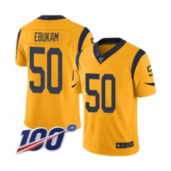 >Men's Los Angeles Rams #50 Samson Ebukam Limited Gold Rush Vapor Untouchable 100th Season Football Jersey