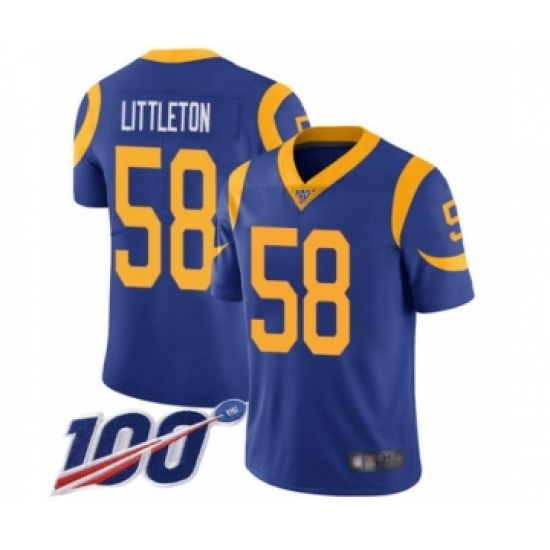 Men's Los Angeles Rams #58 Cory Littleton Royal Blue Alternate Vapor Untouchable Limited Player 100th Season Football Jersey