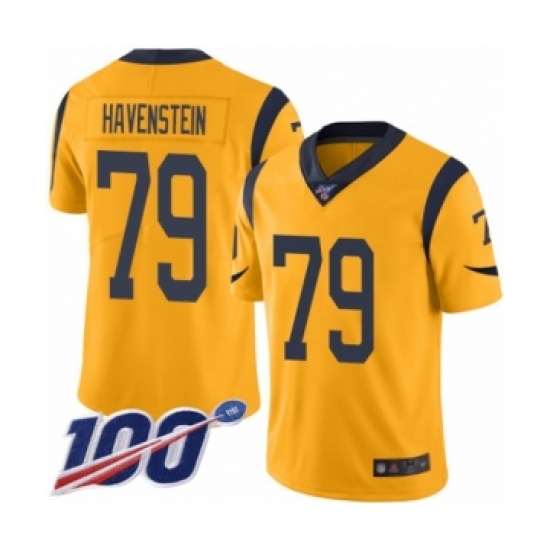 >Men's Los Angeles Rams #79 Rob Havenstein Limited Gold Rush Vapor Untouchable 100th Season Football Jersey