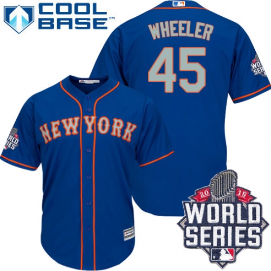 Men's Majestic New York Mets #45 Zack Wheeler Replica Royal Blue Alternate Road Cool Base 2015 World Series MLB Jersey