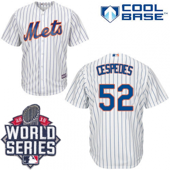 Men's Majestic New York Mets #52 Yoenis Cespedes Replica White Home Cool Base 2015 World Series MLB Jersey