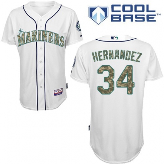 Men's Majestic Seattle Mariners #34 Felix Hernandez Authentic White USMC Cool Base MLB Jersey