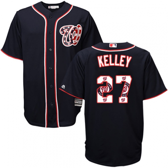 Home>MLB>Washington Nationals>Shawn Kelley>Men's Majestic Washington Nationals #27 Shawn Kelley Authentic Navy Blue Team Logo Fashion Cool Base MLB Jersey