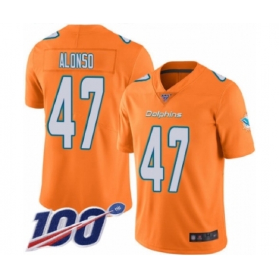 >Men's Miami Dolphins #47 Kiko Alonso Limited Orange Rush Vapor Untouchable 100th Season Football Jersey