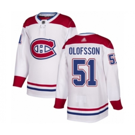>Men's Montreal Canadiens #51 Gustav Olofsson Authentic White Away Hockey Jersey