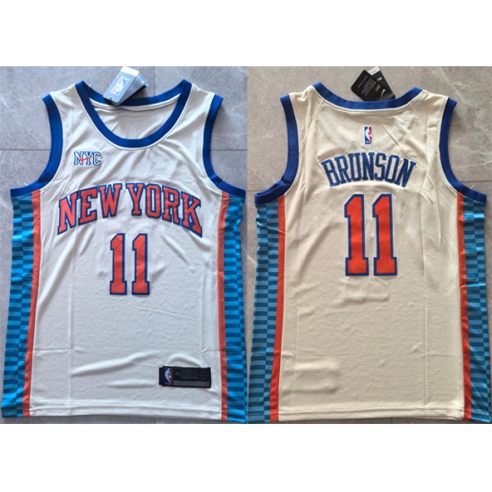 >Men's New Yok Knicks #11 Jalen Brunson Cream 2025-26 City Edition Stitched Basketball Jersey