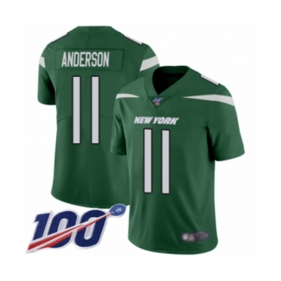 >Men's New York Jets #11 Robby Anderson Green Team Color Vapor Untouchable Limited Player 100th Season Football Jersey