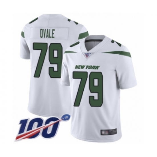 Men's New York Jets #79 Brent Qvale White Vapor Untouchable Limited Player 100th Season Football Jersey