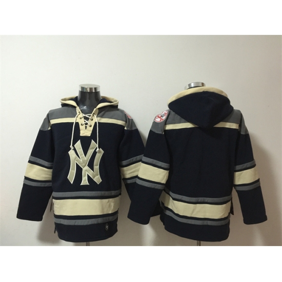 Men's New York Yankees Blank Navy Ageless Must-Have Lace-Up Pullover Hoodie