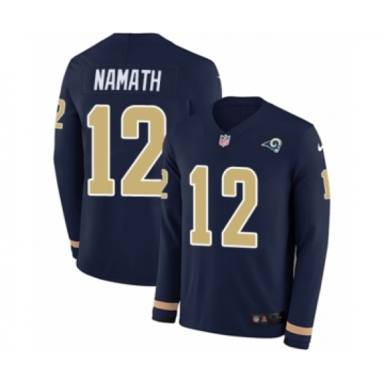 >Men's Nike Los Angeles Rams #12 Joe Namath Limited Navy Blue Therma Long Sleeve NFL Jersey