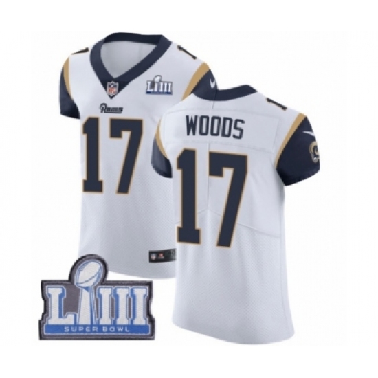 Men's Nike Los Angeles Rams #17 Robert Woods White Vapor Untouchable Elite Player Super Bowl LIII Bound NFL Jersey