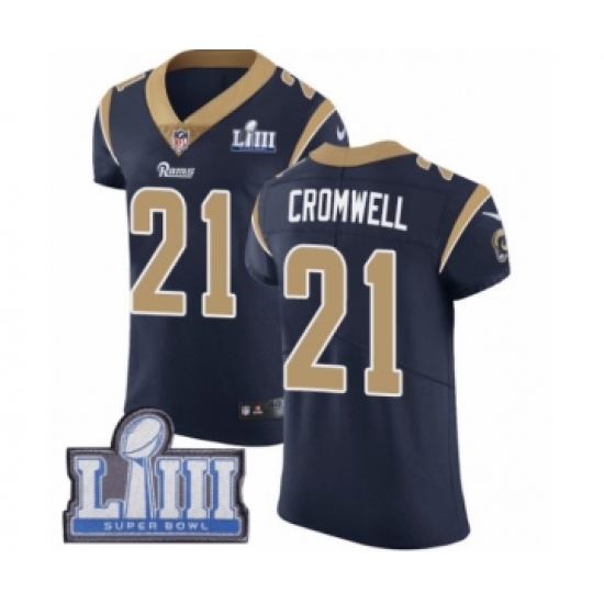 >Men's Nike Los Angeles Rams #21 Nolan Cromwell Navy Blue Team Color Vapor Untouchable Elite Player Super Bowl LIII Bound NFL Jersey