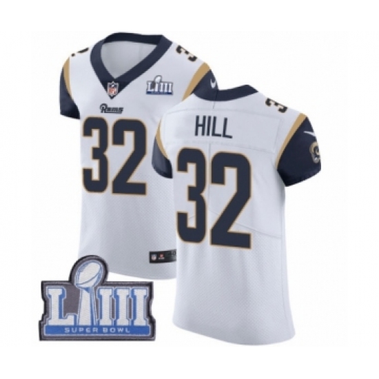>Men's Nike Los Angeles Rams #32 Troy Hill White Vapor Untouchable Elite Player Super Bowl LIII Bound NFL Jersey