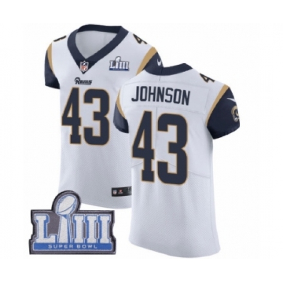>Men's Nike Los Angeles Rams #43 John Johnson White Vapor Untouchable Elite Player Super Bowl LIII Bound NFL Jersey