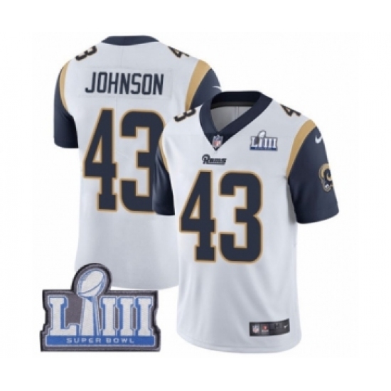 Men's Nike Los Angeles Rams #43 John Johnson White Vapor Untouchable Limited Player Super Bowl LIII Bound NFL Jersey