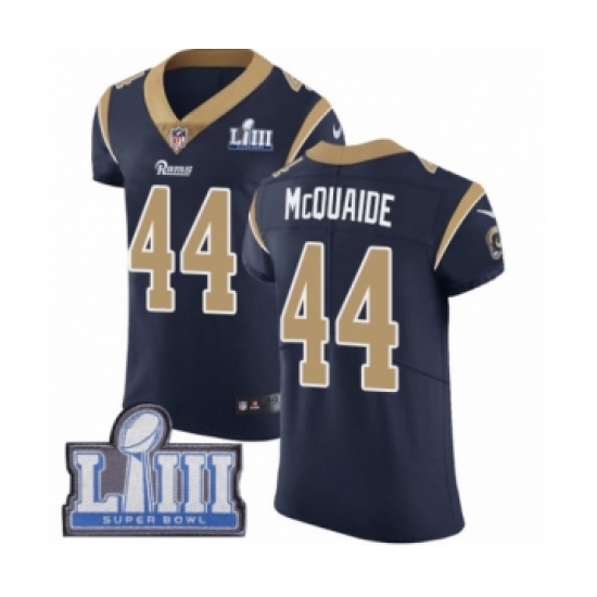 >Men's Nike Los Angeles Rams #44 Jacob McQuaide Navy Blue Team Color Vapor Untouchable Elite Player Super Bowl LIII Bound NFL Jersey