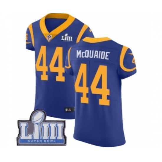 >Men's Nike Los Angeles Rams #44 Jacob McQuaide Royal Blue Alternate Vapor Untouchable Elite Player Super Bowl LIII Bound NFL Jersey