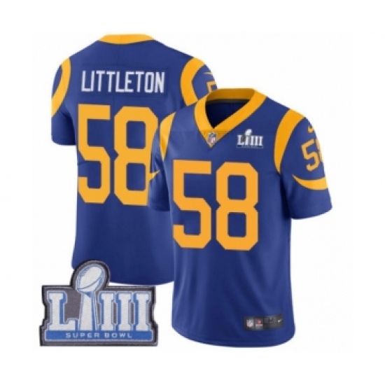 Men's Nike Los Angeles Rams #58 Cory Littleton Royal Blue Alternate Vapor Untouchable Limited Player Super Bowl LIII Bound NFL Jersey