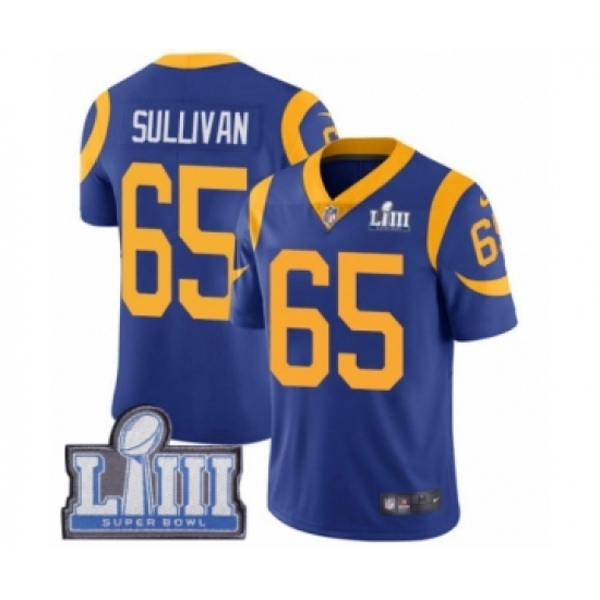 Men's Nike Los Angeles Rams #65 John Sullivan Royal Blue Alternate Vapor Untouchable Limited Player Super Bowl LIII Bound NFL Jersey
