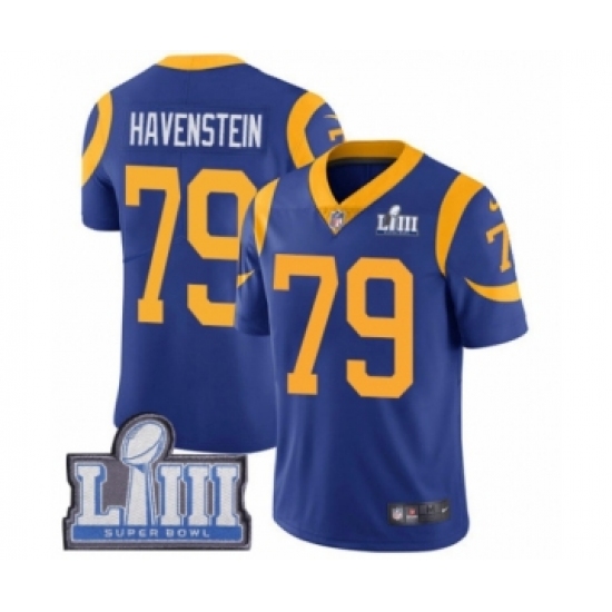 Men's Nike Los Angeles Rams #79 Rob Havenstein Royal Blue Alternate Vapor Untouchable Limited Player Super Bowl LIII Bound NFL Jersey