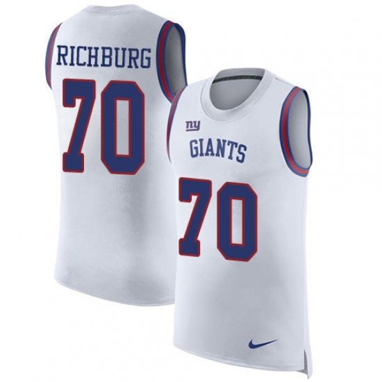 Home>NFL>New York Giants>Weston Richburg>Men's Nike New York Giants #70 Weston Richburg Limited White Rush Player Name & Number Tank Top NFL Jersey