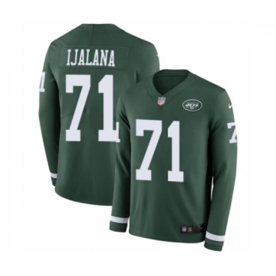 Men's Nike New York Jets #71 Ben Ijalana Limited Green Therma Long Sleeve NFL Jersey