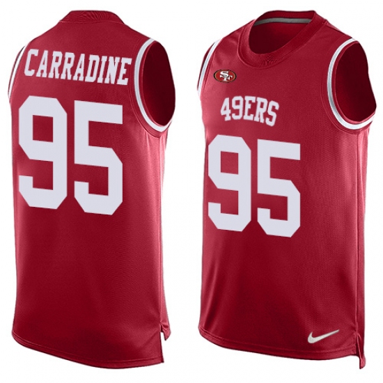 Home>NFL>San Francisco 49ers>Tank Carradine>Men's Nike San Francisco 49ers #95 Tank Carradine Limited Red Player Name & Number Tank Top NFL Jersey