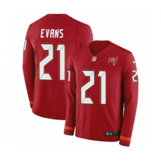 >Men's Nike Tampa Bay Buccaneers #21 Justin Evans Limited Red Therma Long Sleeve NFL Jersey