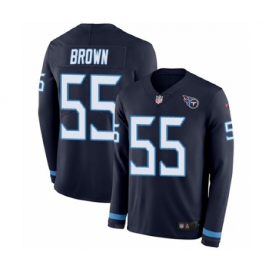 Men's Nike Tennessee Titans #55 Jayon Brown Limited Navy Blue Therma Long Sleeve NFL Jersey