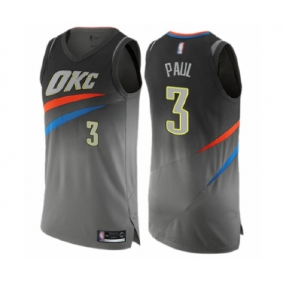 >Men's Oklahoma City Thunder #3 Chris Paul Authentic Gray Basketball Jersey - City Edition