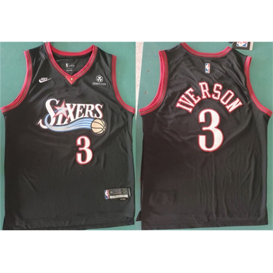 Men's Philadelphia 76ers #3 Allen Iverson Black Throwback Basketbal Jersey