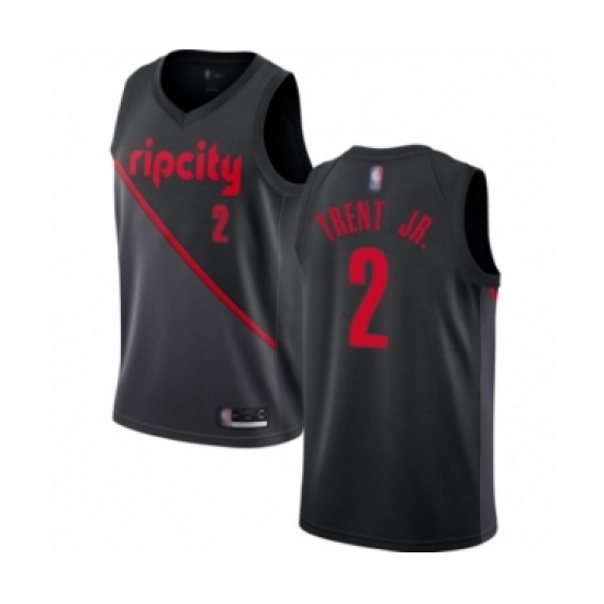 Men's Portland Trail Blazers #2 Gary Trent Jr. Authentic Black Basketball Jersey - 2018 19 City Edition