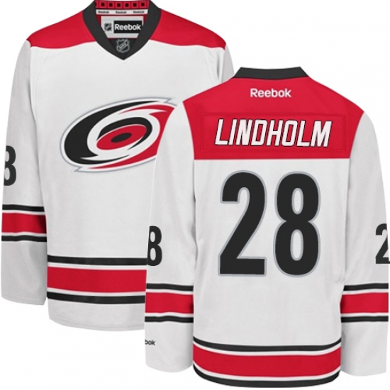Home>NHL>Carolina Hurricanes>Elias Lindholm>Men's Reebok Carolina Hurricanes #28 Elias Lindholm Authentic White Away NHL Jersey