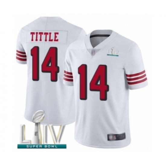 >Men's San Francisco 49ers #14 Y.A. Tittle Limited White Rush Vapor Untouchable Super Bowl LIV Bound Football Jersey