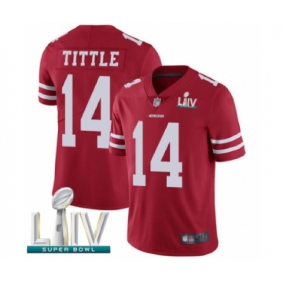 Men's San Francisco 49ers #14 Y.A. Tittle Red Team Color Vapor Untouchable Limited Player Super Bowl LIV Bound Football Jersey