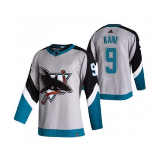 Men's San Jose Sharks #9 Evander Kane Grey 2020-21 Reverse Retro Alternate Hockey Jersey