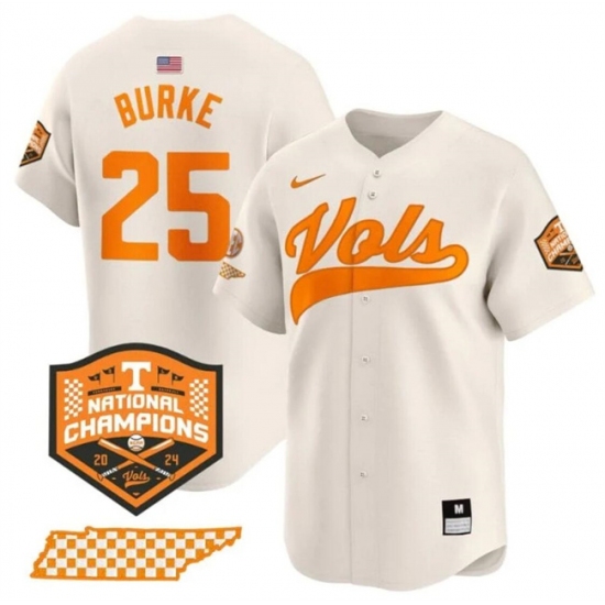 Men's Tennessee Volunteers #25 Blake Burke Cream 2024 Champions Vapor Limited Stitched Jersey