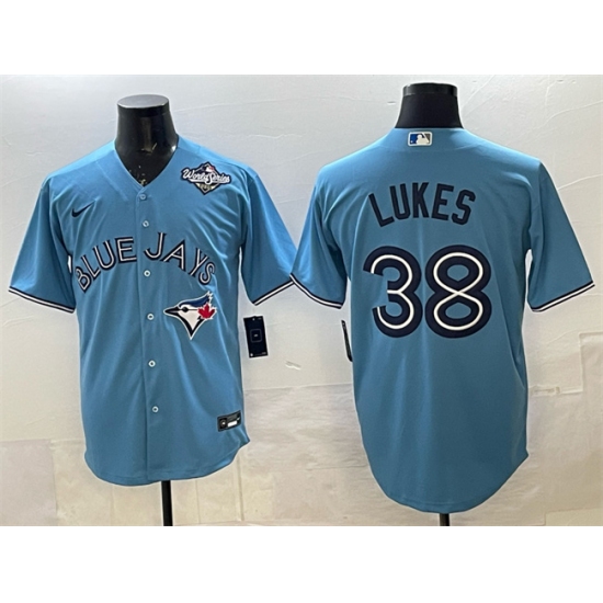 Men's Toronto Blue Jays #38 Nathan Lukes Blue 2025 World Series Cool Base Stitched Baseball Jersey
