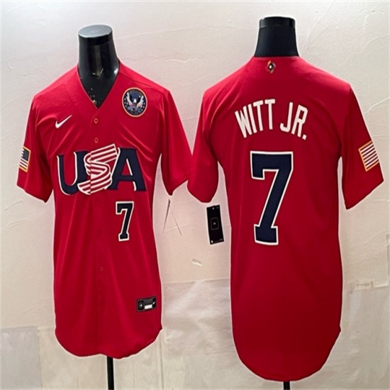 Men's USA Baseball #7 Bobby Witt Jr. Red World Baseball Classic Stitched Jersey