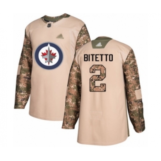 >Men's Winnipeg Jets #2 Anthony Bitetto Authentic Camo Veterans Day Practice Hockey Jersey