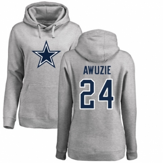 NFL Women's Nike Dallas Cowboys #24 Chidobe Awuzie Ash Name & Number Logo Pullover Hoodie