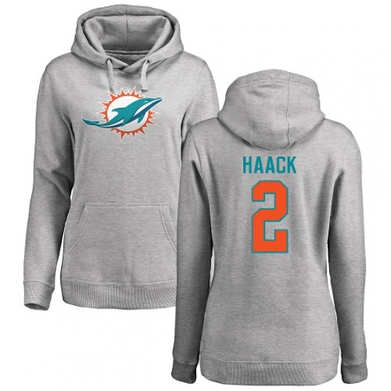 >NFL Women's Nike Miami Dolphins #2 Matt Haack Ash Name & Number Logo Pullover Hoodie