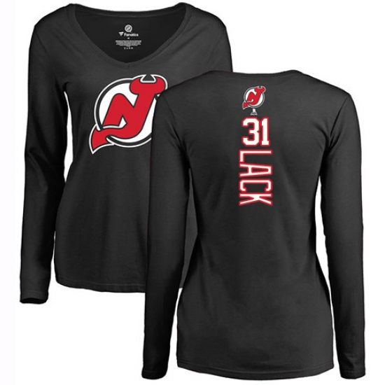 >NHL Women's Adidas New Jersey Devils #31 Eddie Lack Black Backer Long Sleeve T-Shirt