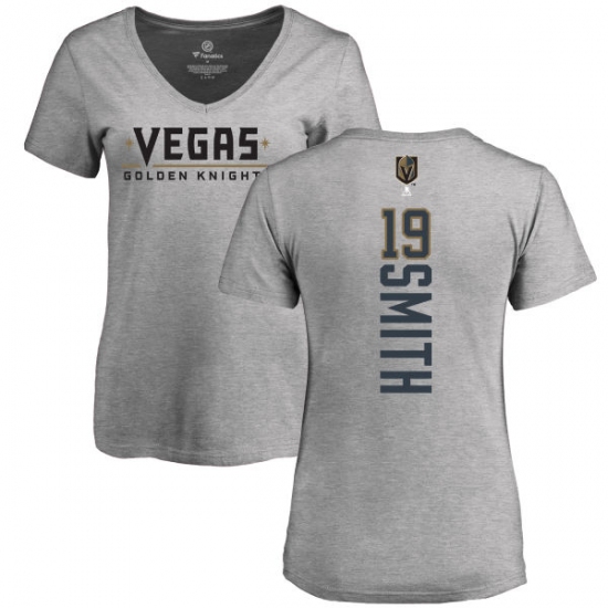 NHL Women's Adidas Vegas Golden Knights #19 Reilly Smith Gray Backer Slim Fit V-Neck T-Shirt