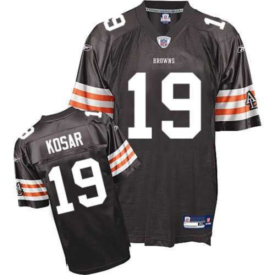 The Reebok Cleveland Browns #19 Bernie Kosar Replica JerseyBrown Team Color Throwback NFL Jersey by Reebok® is made with quick-drying nylon mesh and designed with screen-printed player and team graphics on the chest, back, sleeves and shoulders. 100% polyester diamond back mesh body, Polyester dazzle sleeves and yoke, Player's number screen-printed on the chest, back and sleeves, Player's name screen-printed at the upper back on a sewn down nameplate, Flat-knit collar with NFL® Equipment patch sewn at the point in the front, Woven jock tag shown at lower left front above the hem, Decorated in the team colors, Officially licensed .