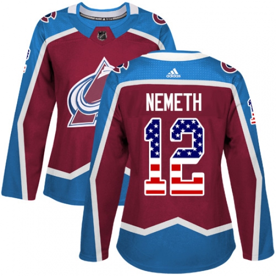 Home>NHL>Colorado Avalanche>Patrik Nemeth>Women's Adidas Colorado Avalanche #12 Patrik Nemeth Authentic Burgundy Red USA Flag Fashion NHL Jersey