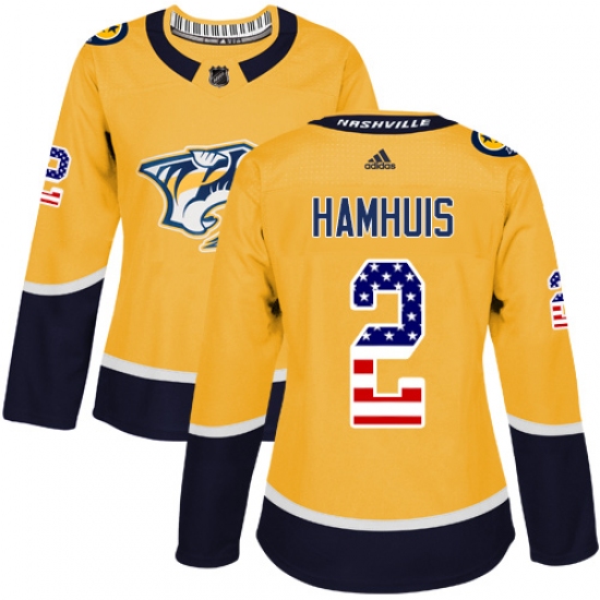 Women's Adidas Nashville Predators #2 Dan Hamhuis Authentic Gold USA Flag Fashion NHL Jersey
