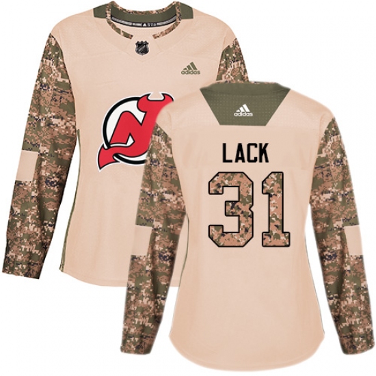 Women's Adidas New Jersey Devils #31 Eddie Lack Authentic Camo Veterans Day Practice NHL Jersey