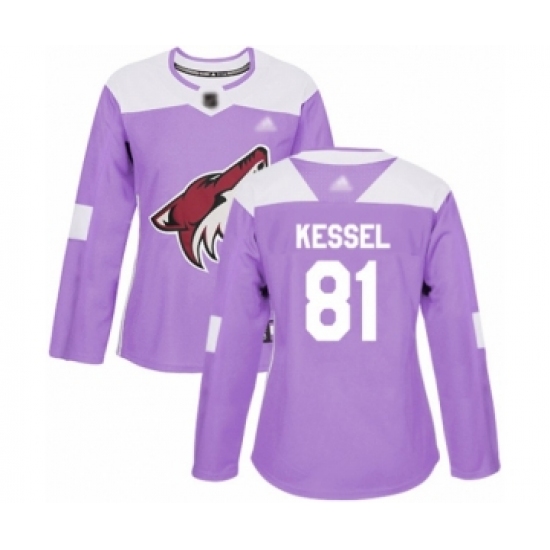 >Women's Arizona Coyotes #81 Phil Kessel Authentic Purple Fights Cancer Practice Hockey Jersey